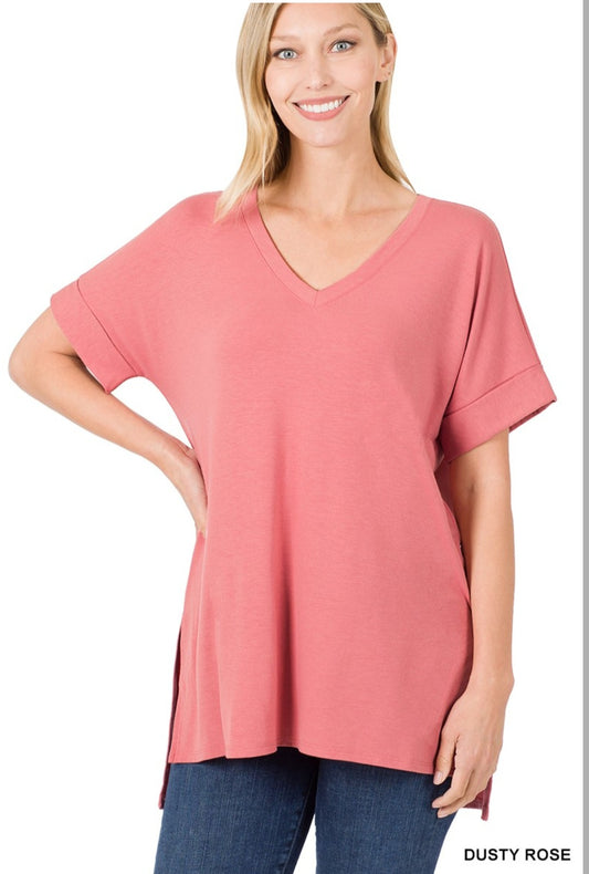 Solid Collared Drop Shoulder Side Slit Sweatshirt