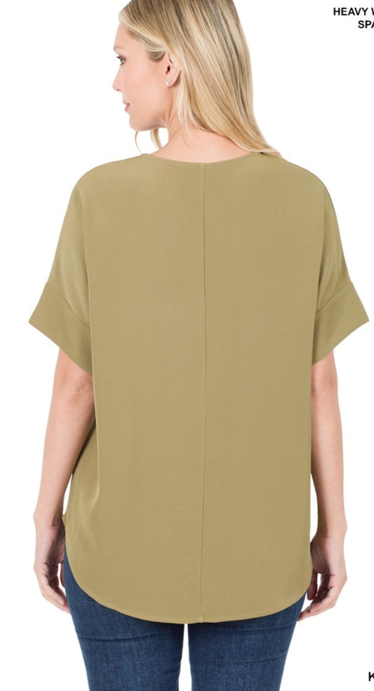 Solid Ribbed Knit Drop Shoulder Henley Top
