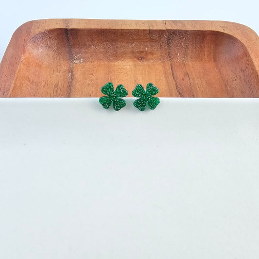 Clover Studs - Green Glitter